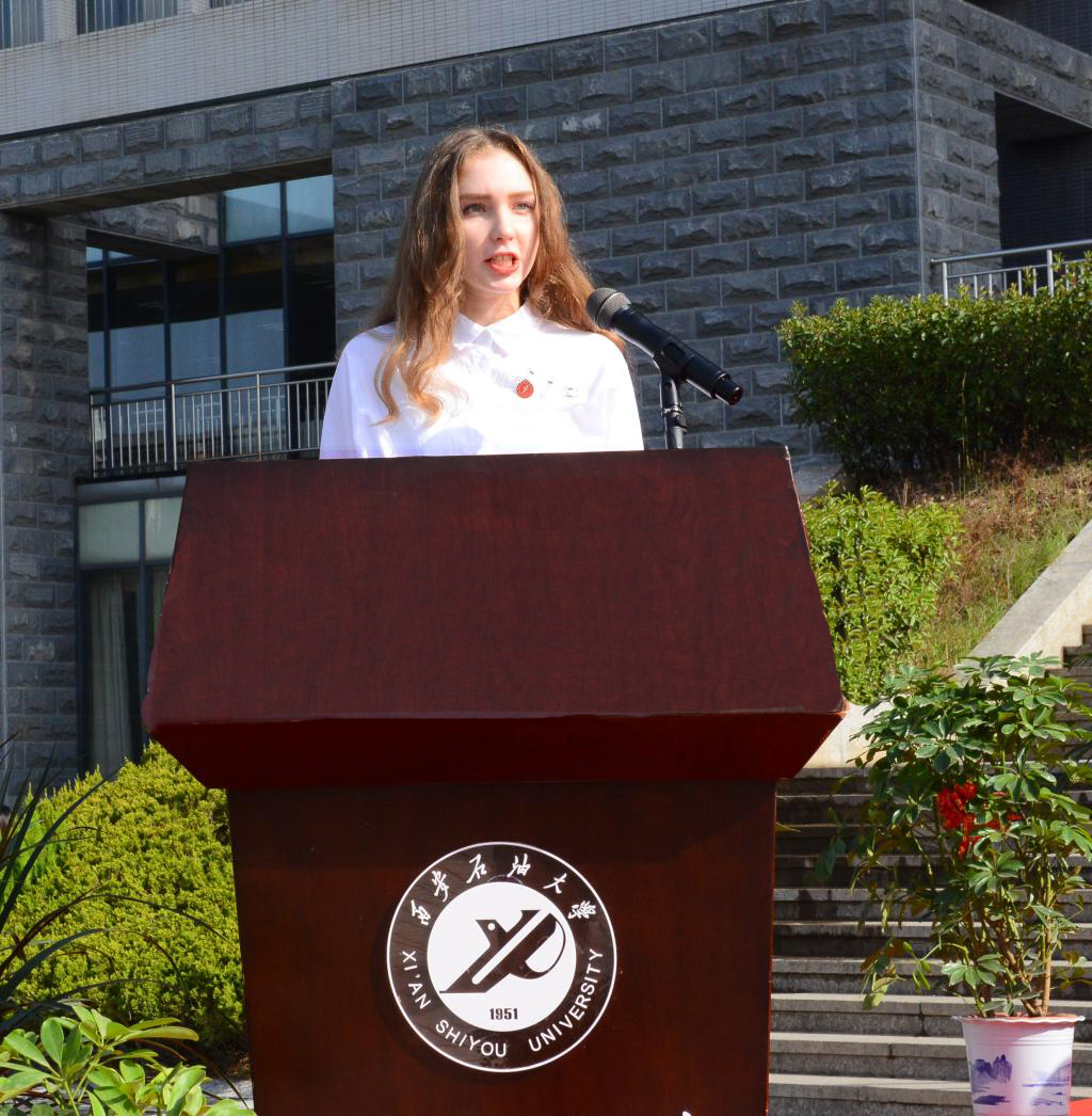 人文学院中文1801班刘渝琳同学、来自俄罗斯的经济管理学院国贸1801班安琳娜同学分别代表毕业生和留学生发言。