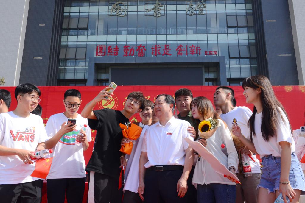校党委书记赛云秀和校长李天太代表学校接受2022届本科毕业生“寸心基金”捐款4282元。