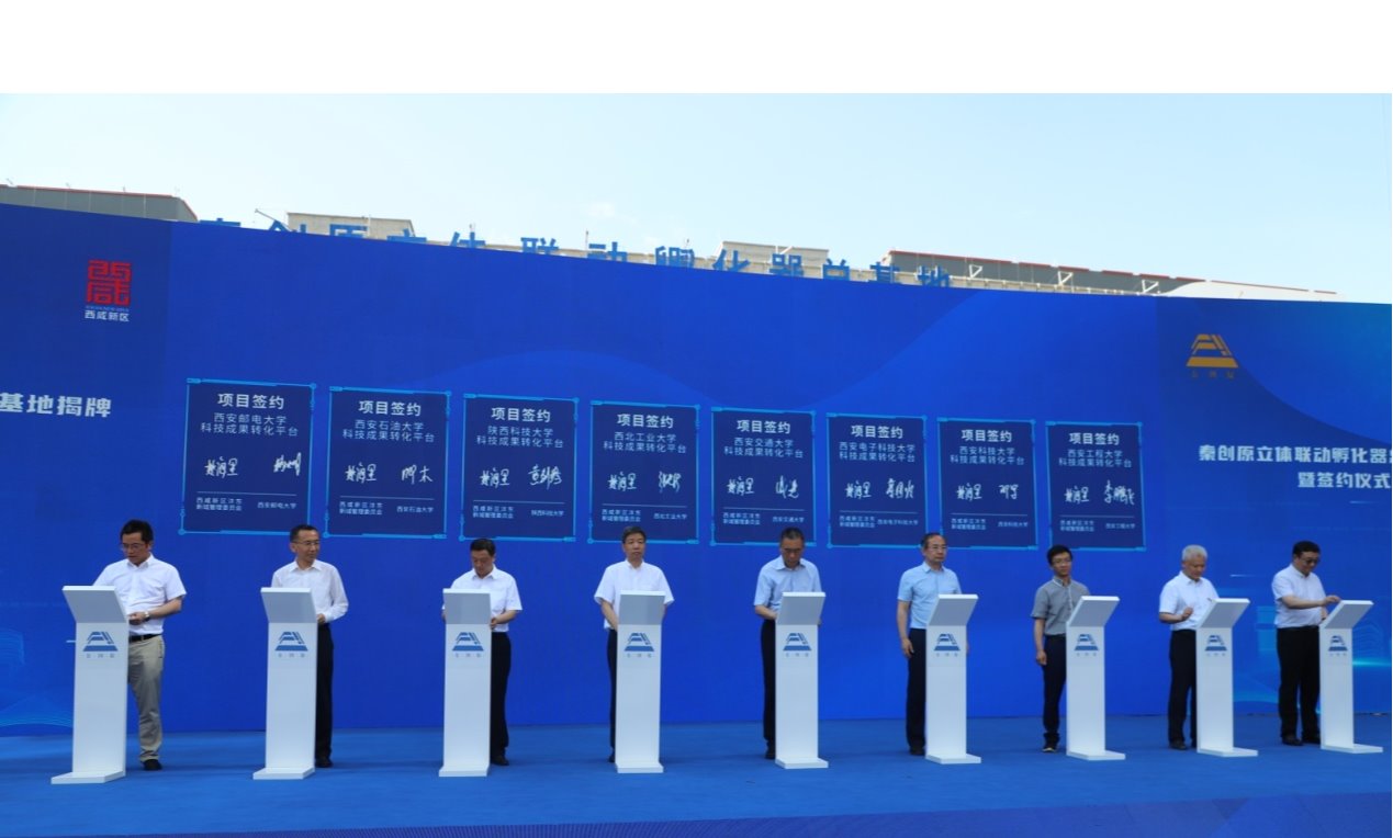 6月25日上午,秦创原立体联动孵化器总基地揭牌暨科技成果转化平台签约仪式在西咸新区沣东新城举行,省委常委、常务副省长王晓出席并为总基地揭牌。省政府副秘书长刘凯,省政府办公厅副主任徐刚,省科技厅厅长孙科,省科技厅副厅长王军,省教育厅副厅长高岭,西安市副市长孟浩等领导嘉宾出席。校党委副书记张木观礼揭牌仪式,并与总基地签订beat365正版唯一官网科技成果转化平台建设协议。