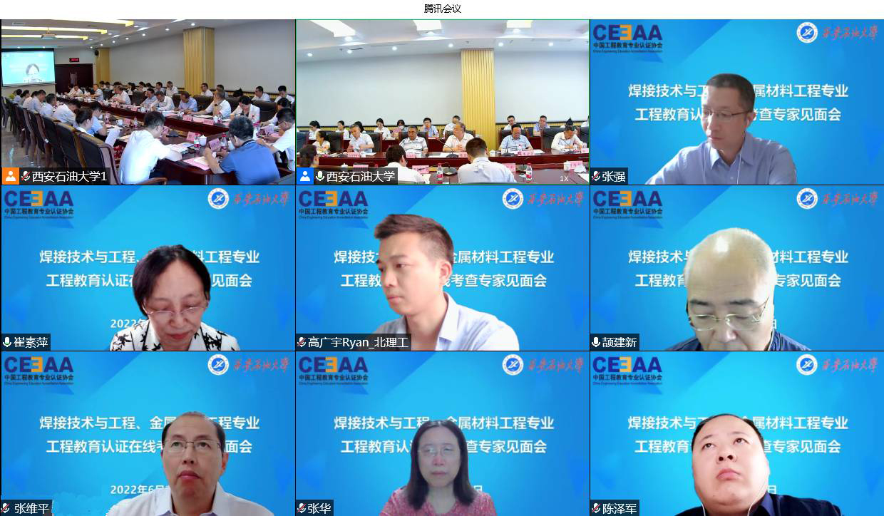6月23日至24日,受中国工程教育专业认证协会委派,以北京工业大学崔素萍教授为组长的专家组一行7人对beat365官网焊接技术与工程、金属材料工程专业进行工程教育认证在线考查。
