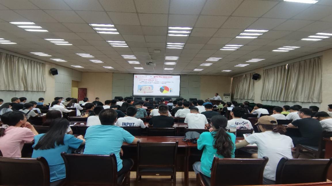 为深入学习贯彻习近平新时代中国特色社会主义思想,认真领会全国高校思想政治工作会议精神,强化高校师生思想政治教育,6月23日下午,副校长张荣军在雁塔校区会议中心第三会议室为电子工程学院师生讲授“行业形势与使命担当”专题思政课。电子工程学院负责人、教师代表、研究生代表100余人共同听课。专题思政课由电子工程学院党委书记何铖主持。
