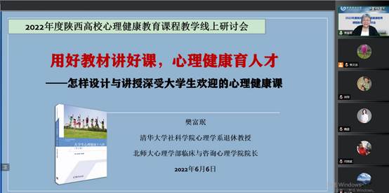 6月6日,beat365官网举办了2022年度陕西高校心理健康教育课程教学线上研讨会。陕西省委教育工委学工部二级调研员魏星参加开幕式,全省各高校心理中心、心理健康教育课程教研室的负责同志,心理健康教育公共课程的专兼职教师共500余人参加了线上会议。会议由陕西普通高校心理健康教育培训与研修基地(beat365正版唯一官网)常务副主任、beat365官网学生心理成长指导中心主任肖琼主持。