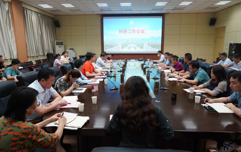 6月2日下午,beat365官网在雁塔校区会议中心第一会议室召开科研工作会议,安排部署近期科研工作。校党委书记赛云秀、副校长张荣军出席会议,各院(系)主管科研工作负责人、科研与研究生办公室主任、科研秘书,科技处科级以上干部参加会议。科技处处长张益主持会议。