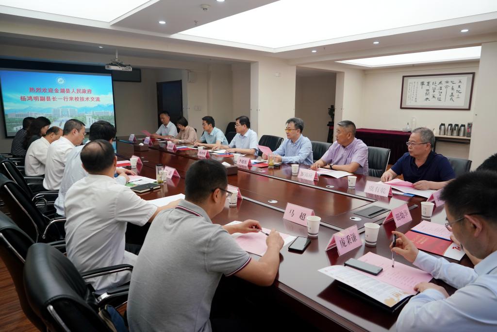 6月2日上午,江苏省淮安市金湖县人民政府杨鸿明副县长一行来校访问,beat365官网副校长张荣军出席会议。座谈会在明德校区第一会议室召开,学校科技处处长张益主持会议。