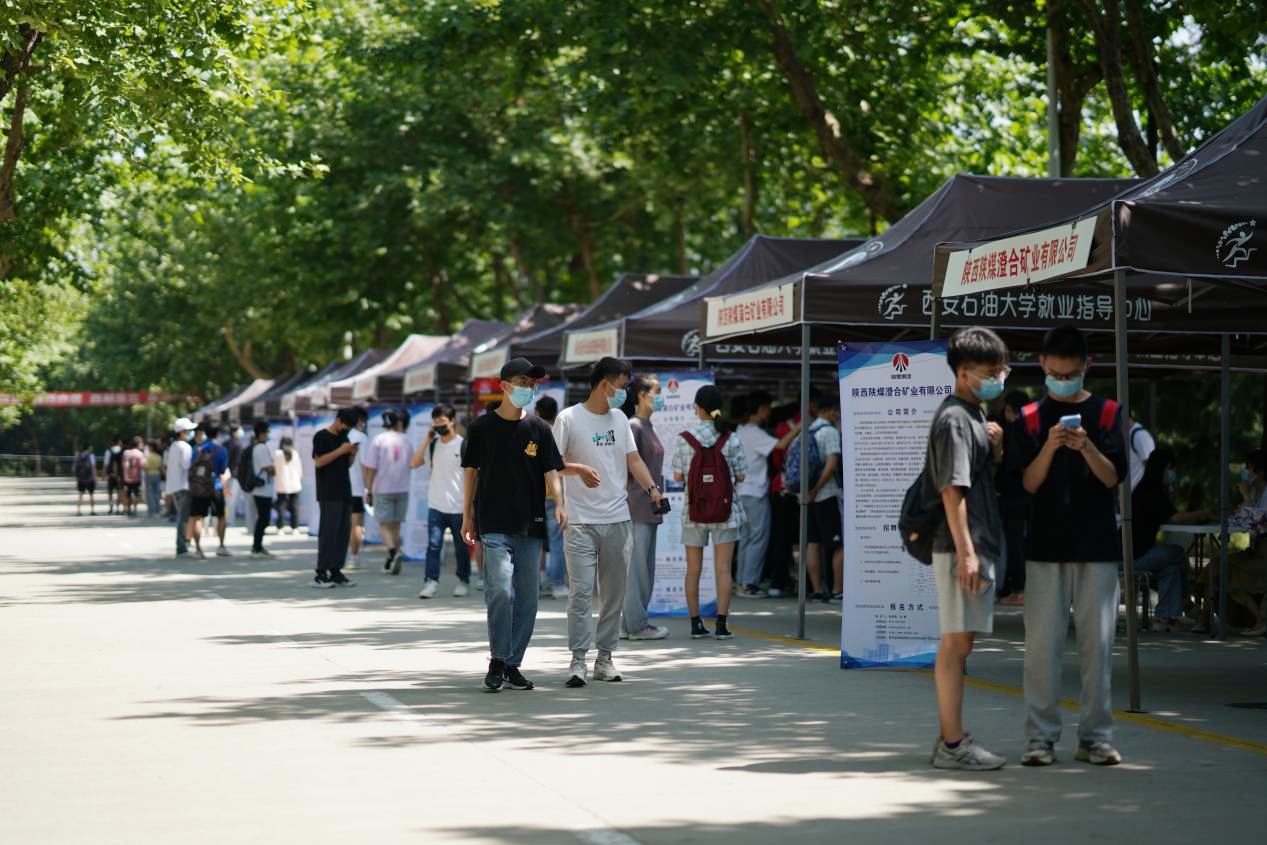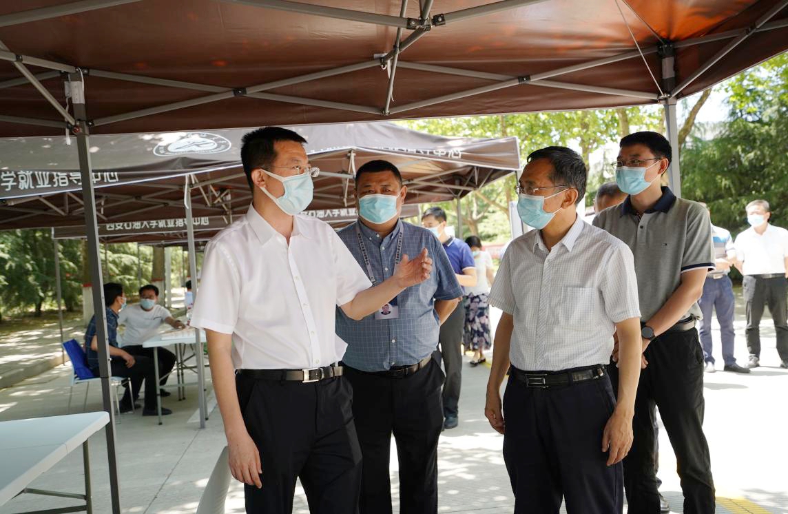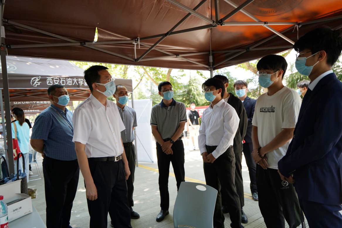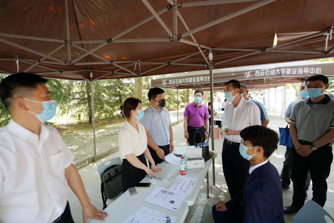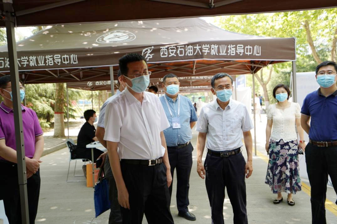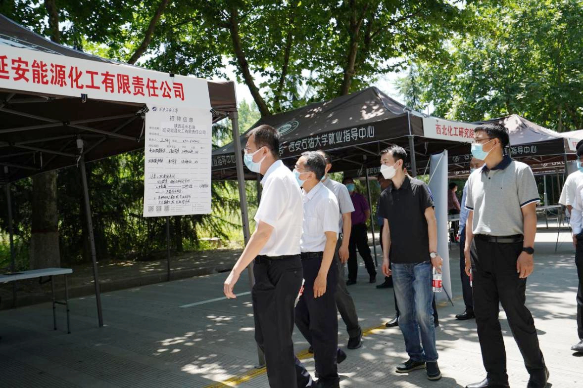 6月1日上午,由陕西省人力资源和社会保障厅、陕西省国有资产监督管理委员会、陕西广电融媒体集团主办,陕西省人才交流服务中心、beat365正版唯一官网承办的“公共就业服务进校园——省属国企稳就业高校毕业生专项招聘会”在beat365官网鄠邑校区举行,陕西延长石油集团、陕煤彬长煤矿、西北有色集团713总队有限公司等18家省内重点企业参会。陕西省人力资源和社会保障厅副厅长井海滨、就业促进处处长王晓龙、陕西省人才交流服务中心毕业生部部长李阳莅临现场视察指导工作。校党委副书记张木、相关职能部门负责同志现场陪同。