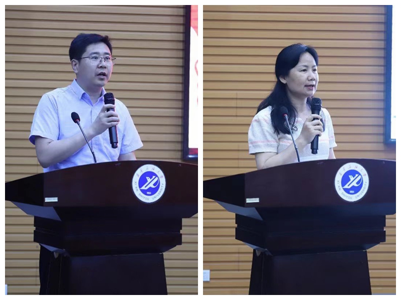 地球科学与工程学院辅导员李佩琦和地质2002班学生彭韵力分别代表心理专干教师和班级心理委员们发言,表示要投身于2022第七届“阳光护航”心理育人宣传季的活动中,持续深入推进院(系)心理健康教育工作。