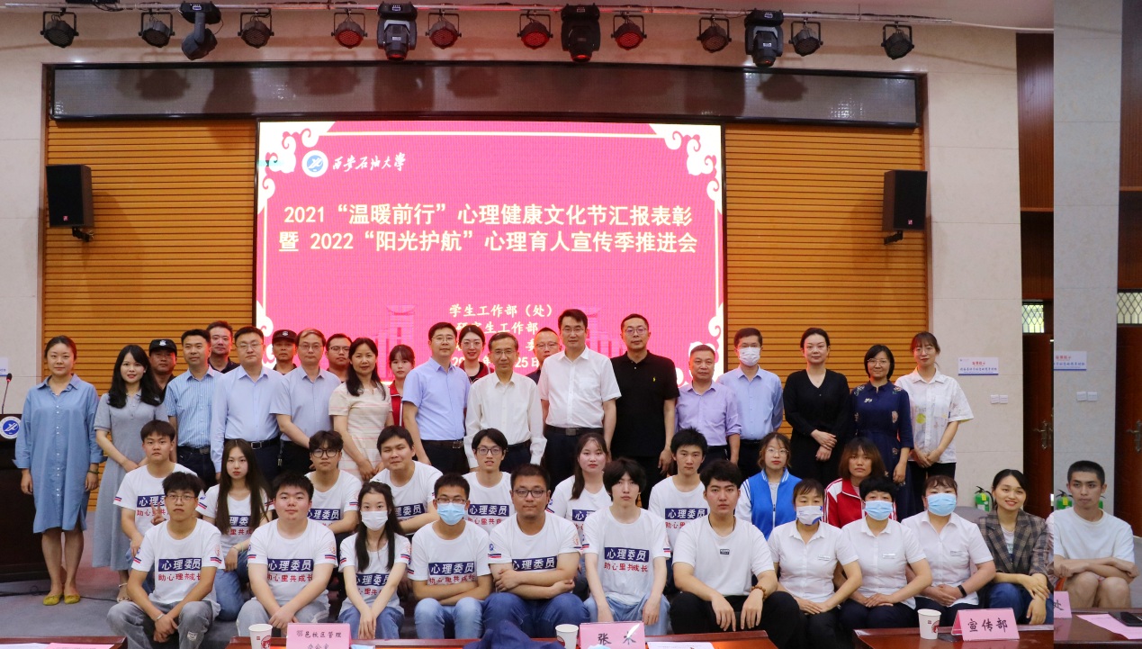 5月25日下午,beat365官网2021“温暖前行”心理健康文化节汇报表彰暨2022“阳光护航”心理育人宣传季推进会在鄠邑校区崇文楼就业指导中心多功能厅举行。校党委副书记张木出席,学生心理成长指导中心主任肖琼主持。各相关部门负责人,各院(系)主管学生工作负责人,心理专干和辅导员代表、心理委员代表、学生代表通过线上与线下相结合的方式参加了会议。