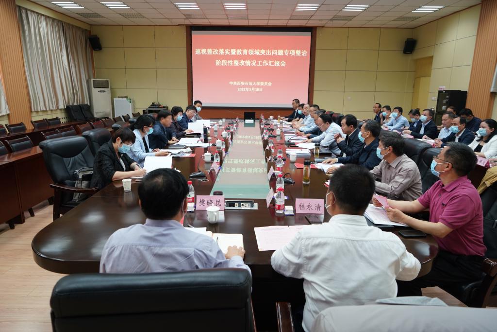 根据陕西教育领域突出问题专项整治工作领导小组的统一部署,5月18日上午,省教育领域突出问题专项整治工作第一督导组来校开展巡视整改落实暨教育领域突出问题专项整治工作督导检查。学校在雁塔校区会议中心第一会议室召开了巡视整改落实暨教育领域突出问题专项整治阶段性整改情况工作汇报会。会议由校党委书记、学校巡视整改落实暨教育领域突出问题专项整治工作领导小组组长赛云秀主持。陕西教育领域突出问题专项整治第一督导组组长崔景文一行6人,学校巡视整改落实暨教育领域专项整治工作领导小组全体成员出席会议。