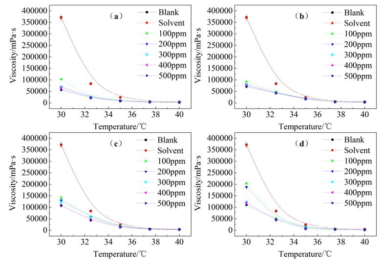 将废弃口罩依次拆分,选择适当的溶剂在加热条件下进行充分溶解和改性,制备出原油流动性改进剂。用在不同类型的原油中进行降粘降凝效果评价。其中,基于口罩中间层材料所制备的原油流动性改进剂对于稠油的降粘率最高可达81%,对于高凝油的降凝幅度最高可达8.3℃。
