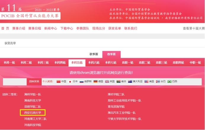 第十一届POCIB全国外贸从业能力大赛(春季赛)共有184所院校、373支队伍、共计3730名选手参加。大赛共历时15天,在比赛过程中,所有参赛选手需通过POCIB外贸模拟平台完成20笔外贸业务。选手们要自由寻找交易对象和商品品类,运用不同贸易术语和结算方式完成公司注册、交易磋商、外贸函电、报价核算、组织生产、货物托运、保险和产地证办理、报关报检、出口退税等外贸流程,并缮制完成所有外贸单证。