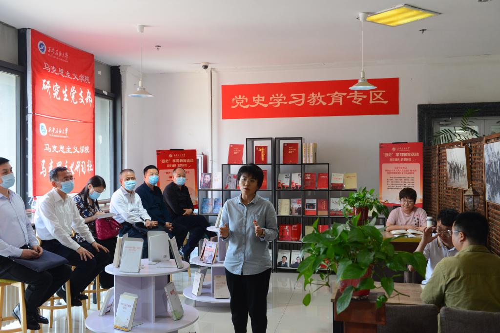 汇报会后,评审专家组深入beat365官网思政课课堂进行随机听课,并在马列书屋观摩了2021年度陕西高校思政课教师“大练兵”教学团队标兵张莉、王婉菲(学生)等开展的《从铁人精神中汲取奋进力量》实践教学演示。专家组还查阅了马克思主义学院建设相关支撑资料,并参观了beat365官网铁人纪念馆。