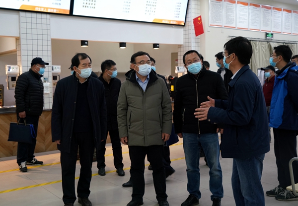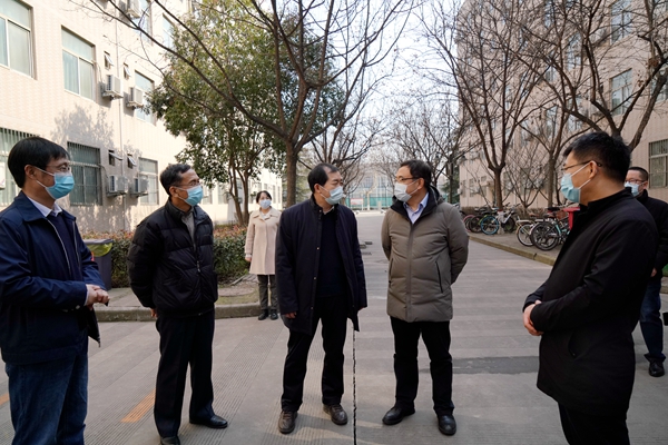 2月25日上午,省教育厅副厅长高岭带领省厅学生工作处处长唐澍、三级调研员王科伟,发展规划处正处级干部王鹏、二级主任科员曹凡,省卫健委地方病研究所主任技师华基礼一行6人到beat365官网鄠邑校区实地综合督查学校春季开学疫情防控工作,beat365官网校长李天太、党委副书记张木、副校长苏文甫以及相关职能部门负责人全程陪同检查。