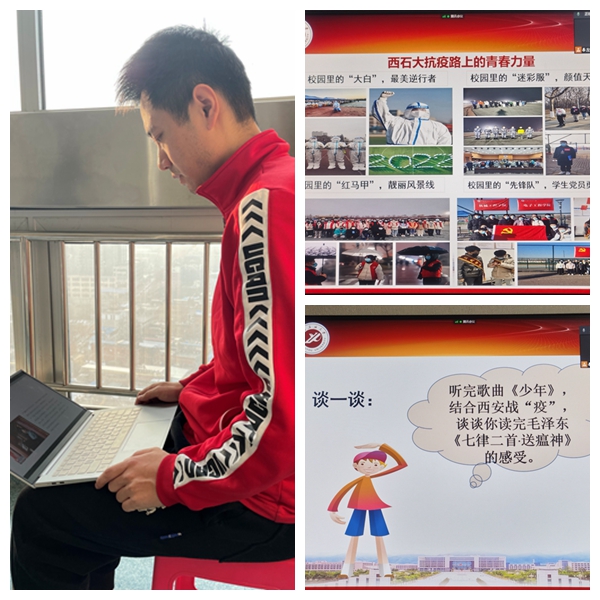 习近平总书记指出:“思想政治理论课是落实立德树人根本任务的关键课程。”面对突如其来的新冠疫情,如何将“关键课程”讲深、讲透,讲得理直气壮、讲得流光溢彩,马克思主义学院的思政课教学标兵和能手们完善教学设计,创新教学手段,深化教学过程,使学生在键盘上感受思政课的法度,在屏幕上感受思政课的温度,在雁塔到鄠邑的时空中感受思政课的战“疫”力量。