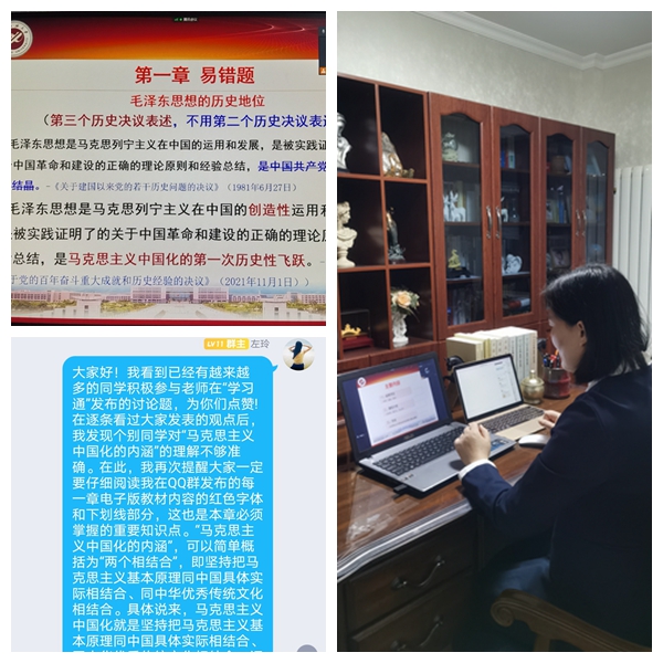 战胜疫情,思政课不能缺席,思政课教师更不能缺位。马克思主义学院院长张海涛表示,特殊时期的线上教学,不仅是应对疫情防控的应急之策,更是思政课教学改革的重要契机。学院要充分发挥思政课教学标兵的示范引领作用,积极推动传统教学和网络教学的融合创新,切实提高线上思政课教学实效,将社会主义核心价值观融入教育教学全过程,充分彰显习近平新时代中国特色社会主义思想的真理力量。