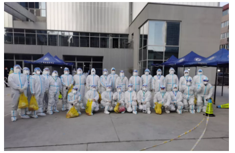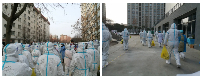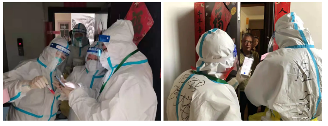 清晨7:30,楼长和单元长经过必要的防疫知识培训,穿好防护服,带领医护人员来到各自负责的家属楼,挨家挨户敲门、扫码、协助核酸检测,逐一记录。