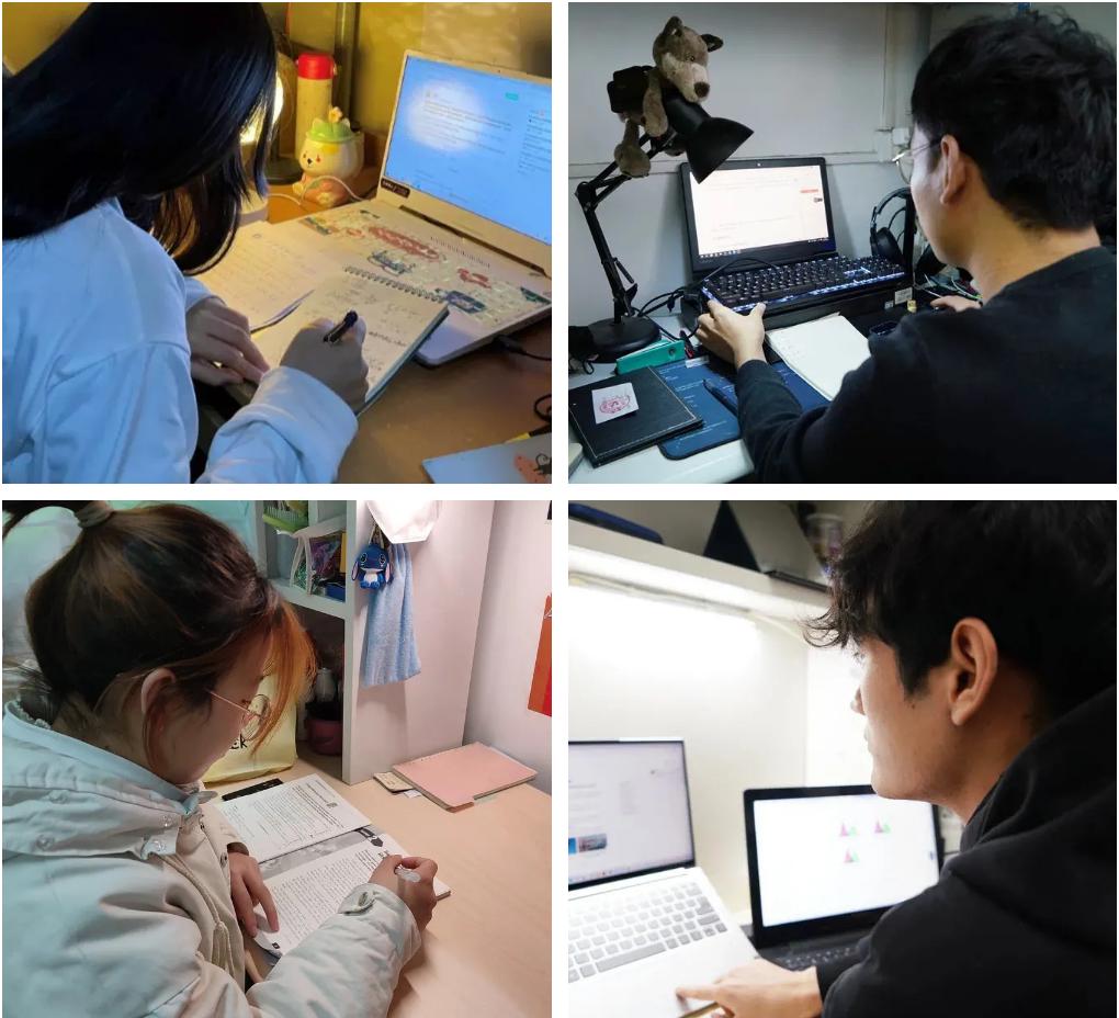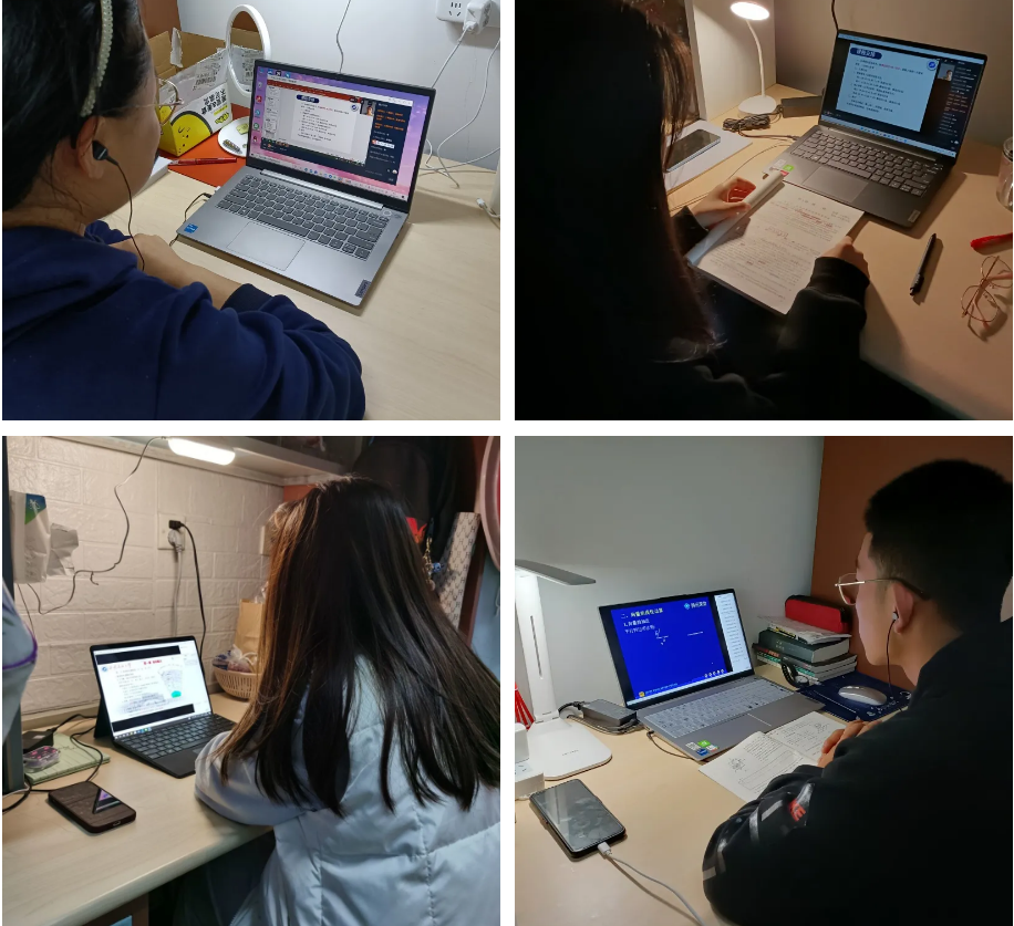 “停课不停学”,beat365官网学子通过电脑、平板、手机等设备进入直播课堂,在宿舍认真地上网课。 戴上耳机,聚精会神,思路紧跟老师的节奏。没有课程的时间也要自主学习,写作业、查论文、浏览信息。自我的时间,更要好好管理,用笔记录课堂知识要点。