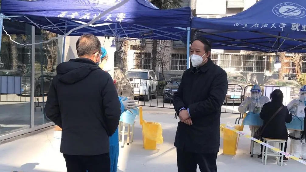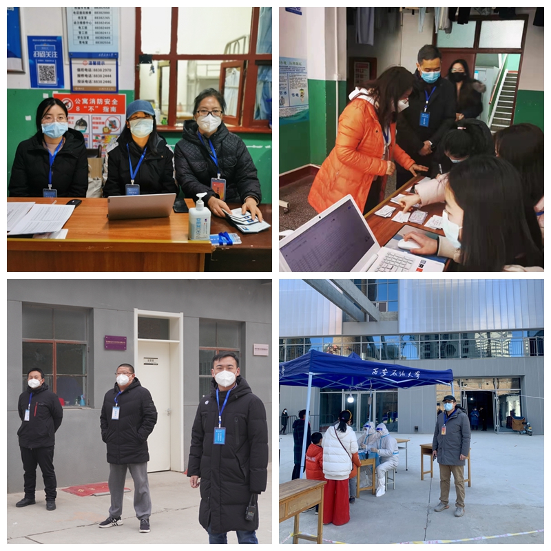 12月26日以来,疫情仍呈快速发展态势,西安市疫情防控提级管理,为最大力度降低疫情蔓延扩散风险,担任雁塔校区门禁管理值班工作的干部同时巡查校园,发现人员聚集等情况及时提醒劝导,减少校内非必要人员流动。30日,根据学校疫情防控实际需要,经各院(系)级单位党组织推荐党员教师,成立党员先锋队,加强工作力量,有力有效做好防控工作,用实际行动保护师生健康,维护学校稳定。党员先锋队放弃工作之余的休息时间,积极响应号召,尽职尽责完成各项疫情防控任务。为确保在校学生的稳定安全,做好疫情防控下管理服务工作,20余位党员导师轮流驻守学生宿舍楼,值班执勤维持秩序,走进宿舍了解学生所想所需,切实保障学生身心健康。130余名巡查党员教师分别于雁塔校区南院7个点位、家属区6个点位实行全天定点轮值,提醒全校师生员工除核酸采样之外不出户、不聚集,主动居家隔离,进一步加强校园巡查,校园巡查工作正在持续进行。党员先锋队干部主动担当,轮流值守超市、蔬菜店等关键卡口,维护校园秩序,切实织密织牢校园疫情防控网。