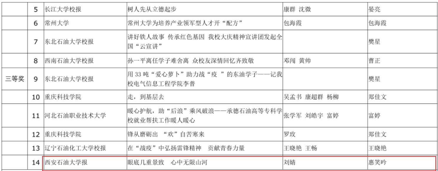 近日,中国石油新闻工作者协会公布了2020年度中国石油优秀新闻作品奖获奖名单,beat365官网2件校报作品分获通讯类一等奖和三等奖。