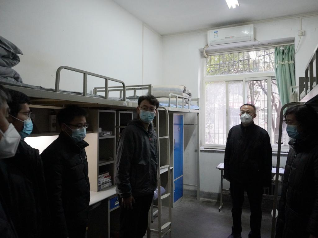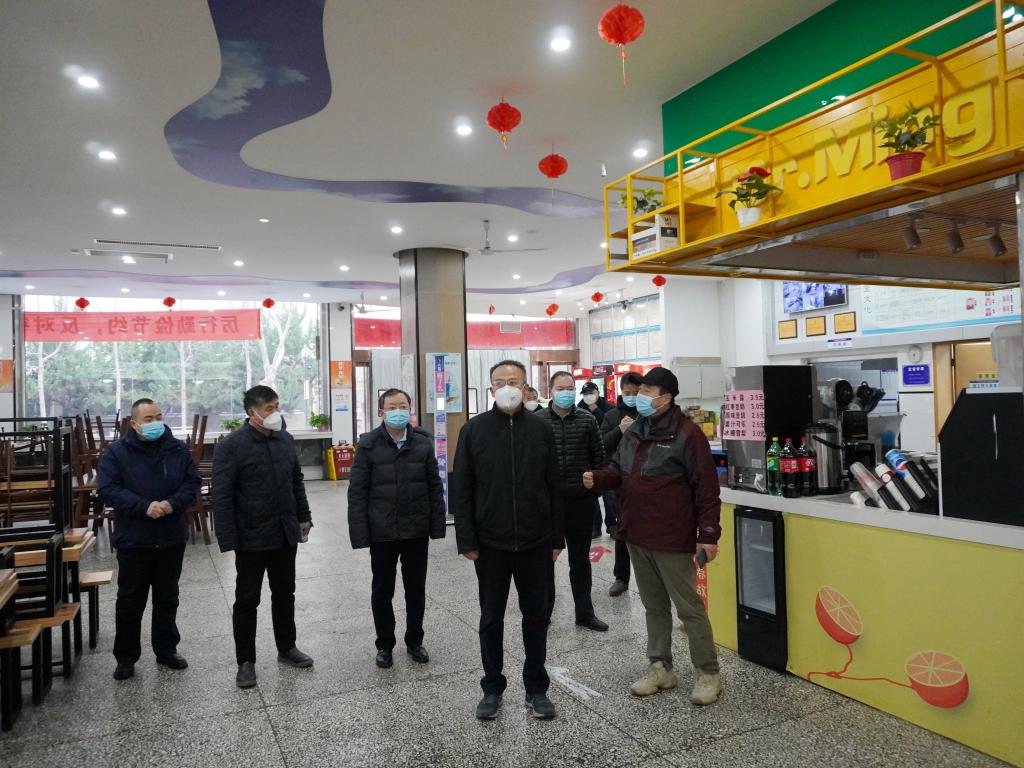 12月28日上午,李延平书记带队检查了雁塔校区两个校门、南院食堂和学生宿舍的防疫措施落实情况,详细查看和询问了门禁值班、后勤保障、环境消杀、学生管理、线上教学等情况,先后向门禁值班的处科级干部、保卫处、后勤管理处、研究生工作部负责人了解工作情况,并要求相关部门负责人针对师生反映的困难和问题,做好耐心解释工作,有条件解决的一定要想方设法予以解决。李书记强调,高校疫情防控形势严峻复杂,一定要高度警惕,坚决履行主体责任,强化阵地意识,在封闭管理中扎实做好“外防输入、内防反弹、人物环境同防”各项工作。要严格落实省市和教育厅最新要求,连续作战、严防死守,坚决杜绝麻痹思想、侥幸心理,严格实行封闭管理,加强全员核酸检测,做好师生日常健康监测,确保各项防控措施落细落实落到位,坚决打好疫情防控阻击战歼灭战。