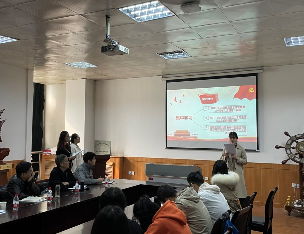 会上,党支部书记闫欢介绍了党支部基本情况,汇报了党支部自成立以来在支部建设、党员发展、学习教育、主题党日活动等方面的工作情况,以图文并茂的形式展示了党支部特有的志愿活动风采。党支部组织委员刁书琪安排了近期学习教育活动,带领与会党员集中观看了习近平总书记在纪念辛亥革命110周年大会上的讲话视频、深入学习了习近平总书记在北京大学师生座谈会上的重要讲话。党支部纪检委员毛蕊欣带领大家一起回顾了五四运动历史事件,重温了习近平总书记在纪念五四运动100周年大会上的讲话精神。通过集中学习,学生党员认识到青年一代不仅要热爱祖国、维护祖国统一,更要肩负起中华民族伟大复兴的历史重任。在研讨交流环节,部分党员同志结合自身实际,从提高思辨能力、加强自身本领、身体力行“为人民服务”等方面作交流发言。