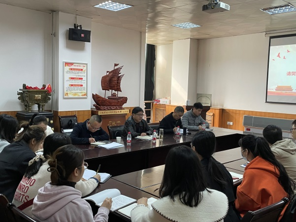 11月5日,经济管理学院研2020级学硕党支部“做爱国奋斗的新时代青年”专题学习研讨会在雁塔校区东方石油楼1507会议室召开。学校总会计师樊晓民作为联系该支部的校领导出席会议参加学习研讨,并为与会学生党员讲授专题思政课,经济管理学院党委书记王宏卫、党委副书记王刚、学生工作办公室主任李博文及党支部全体成员近30人参加会议。