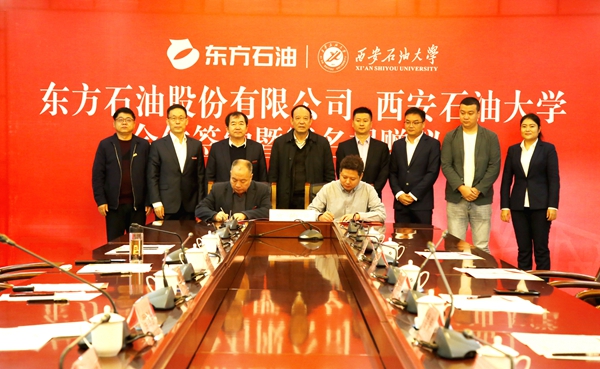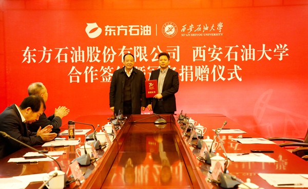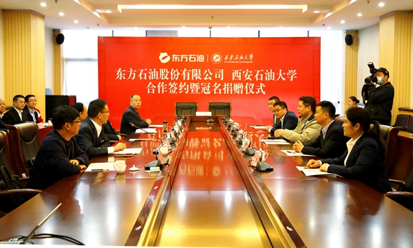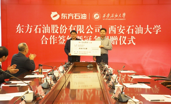 10月12日上午,beat365官网与东方石油股份有限公司合作签约暨冠名捐赠仪式在鄠邑校区图书馆第二会议室举行。东方石油股份有限公司董事长兼总经理刘浩、副总经理姜涛、吴伟,财务总监毛维维、副总经理潘英,beat365官网党委书记赛云秀、校长李天太、副校长陈军斌、总会计师樊晓民出席会议,会议由校党委副书记雷西合主持。