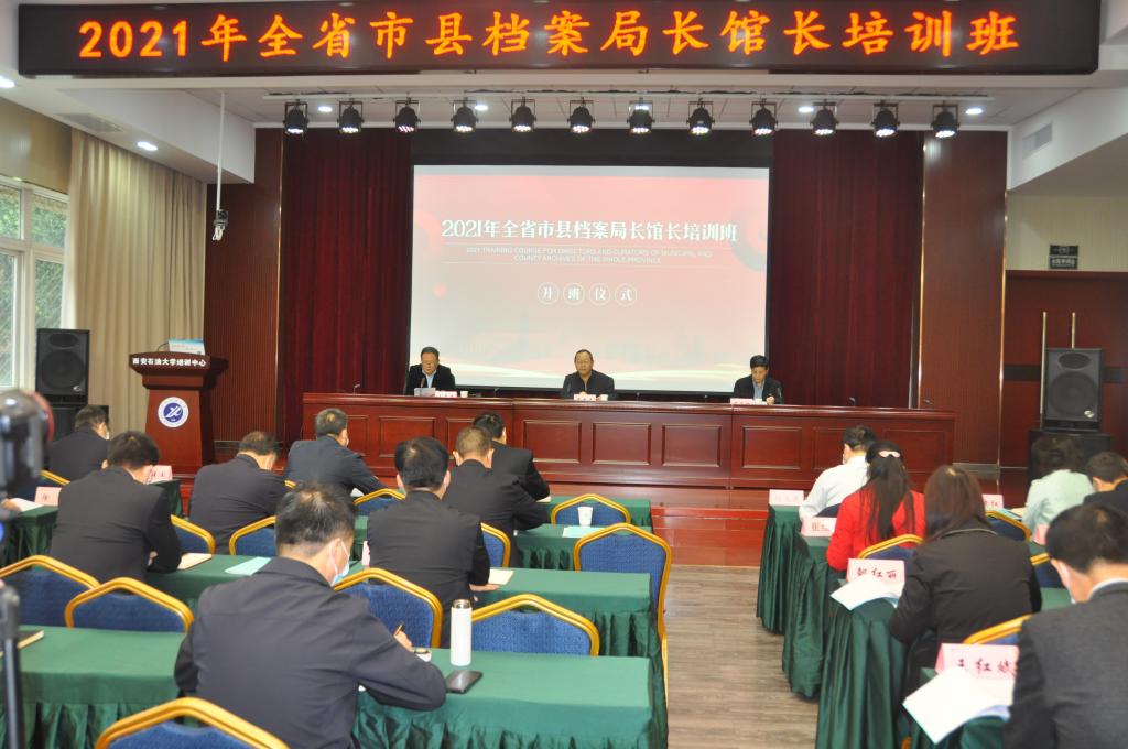 10月11日上午,2021年全省市县档案局长馆长培训班在beat365官网培训中心顺利开班。省委副秘书长、省档案局馆长高新民,副校长杨战社出席开班仪式。仪式由陕西省档案局二级巡视员、人事处处长王展志主持。来自全省各市、县档案局馆长及省档案馆干部80余人将参加本次培训。