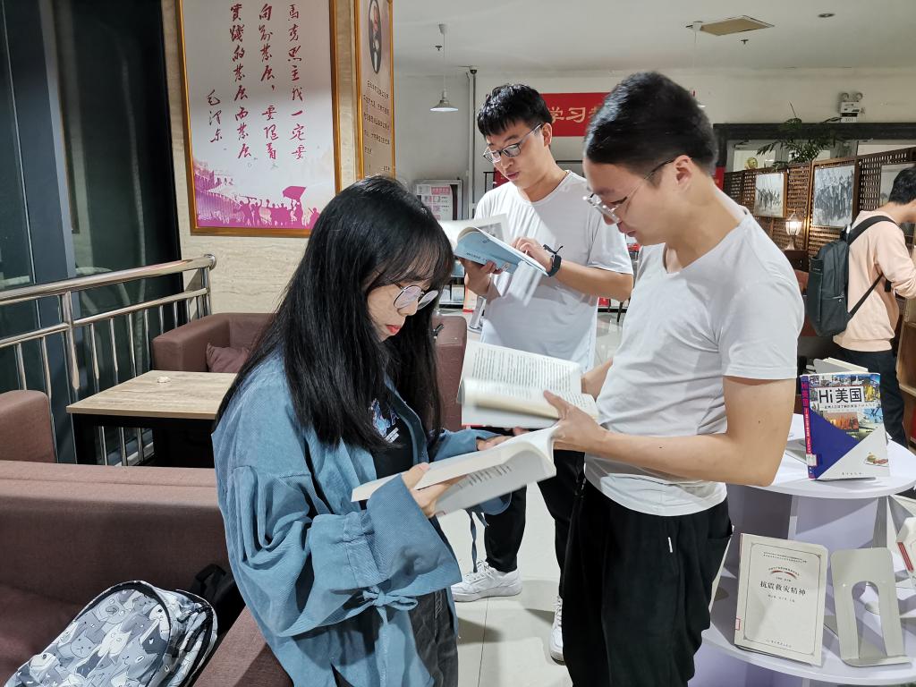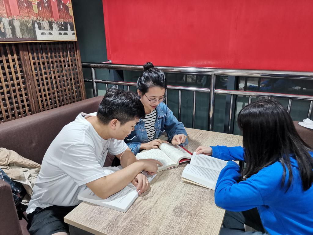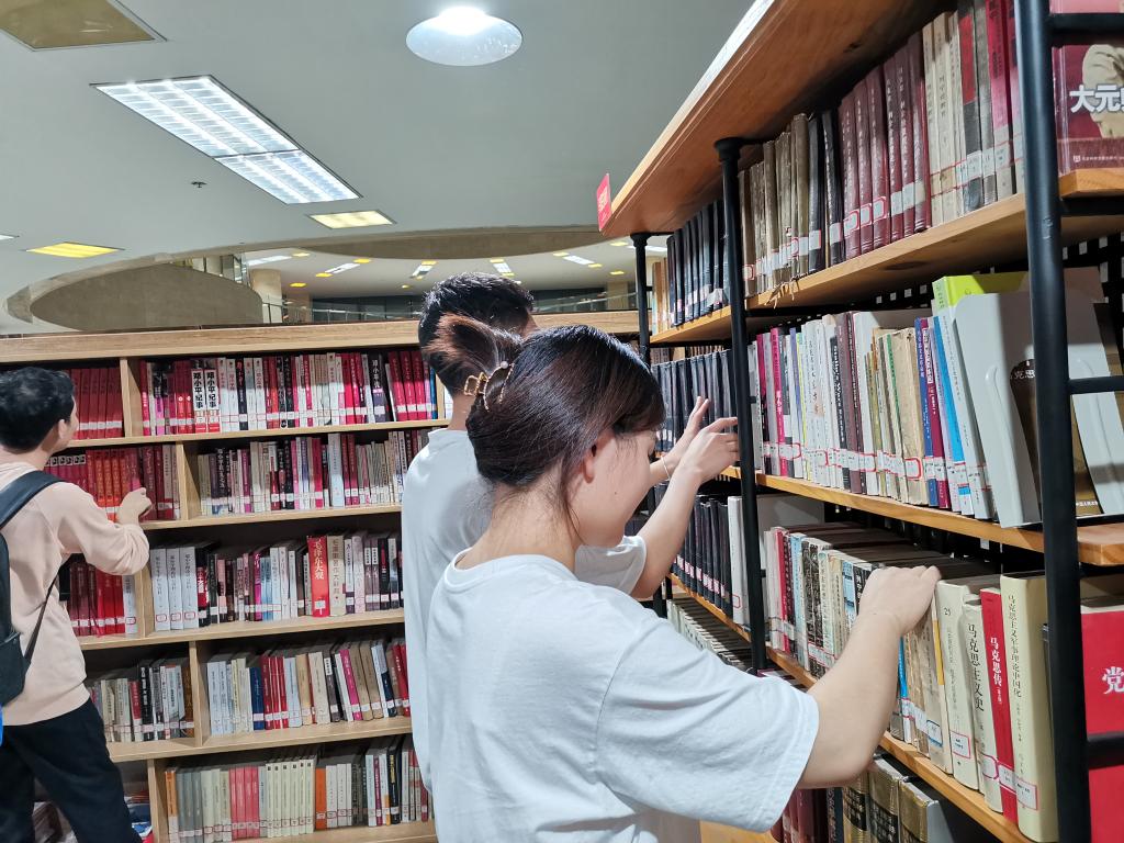 国庆期间,马克思主义学院研究生在鄠邑校区图书馆马列书屋帮助整理书籍,并开展读书研讨活动。学院研究生辅导员童玲老师参与指导,全体留校的2021级研究生参加了此次整理分享交流活动。“马列书屋”是beat365官网具有代表性的学习马克思主义教育基地,书屋内陈列着经典著作以及多个国家不同时期众多学者对马克思主义、马克思主义中国化的著作共500余册。另有中国共产党思想理论资源数据库、中国社会科学文库等11个数据库,包含有关马列的电子图书4060册及近1.69万篇有关马列的论文(电子版)可供师生学习使用。沉浸式的VR体验、丰富的文献资料,极大地帮助了师生实现自我教育和自我提高,为研究生学习马克思主义打造了坚实的基础。