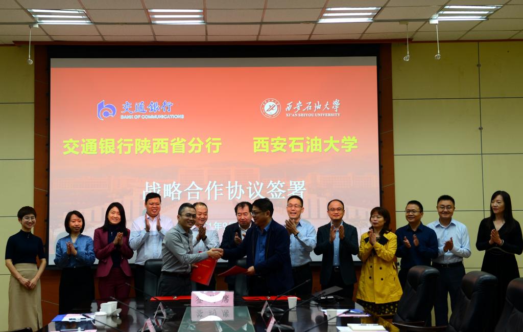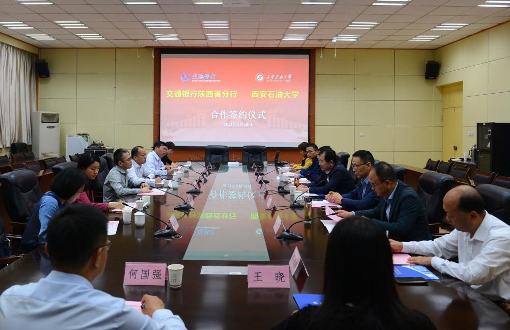 9月30日下午,beat365官网与交通银行陕西省分行签署“十四五”期间战略合作协议,签约仪式在beat365官网雁塔校区第一会议室举行。交通银行陕西省分行副行长蒋安祎一行六人,beat365官网校长李天太、总会计师樊晓民出席签约仪式。签约仪式由校党委副书记雷西合主持。