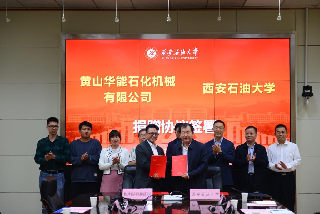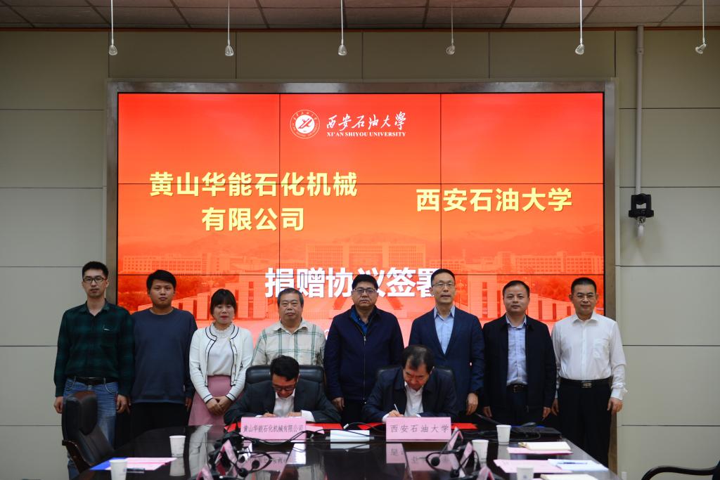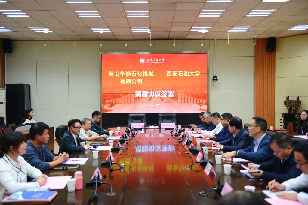 9月28日下午,beat365官网在雁塔校区第二会议室举行黄山华能石化机械有限公司合作捐赠协议签署会。黄山华能石化机械有限公司董事长李杨(继教院99级校友),技术总工田宽等一行5人,beat365官网校长李天太、总会计师樊晓民出席会议。会议由校党委副书记雷西合主持。