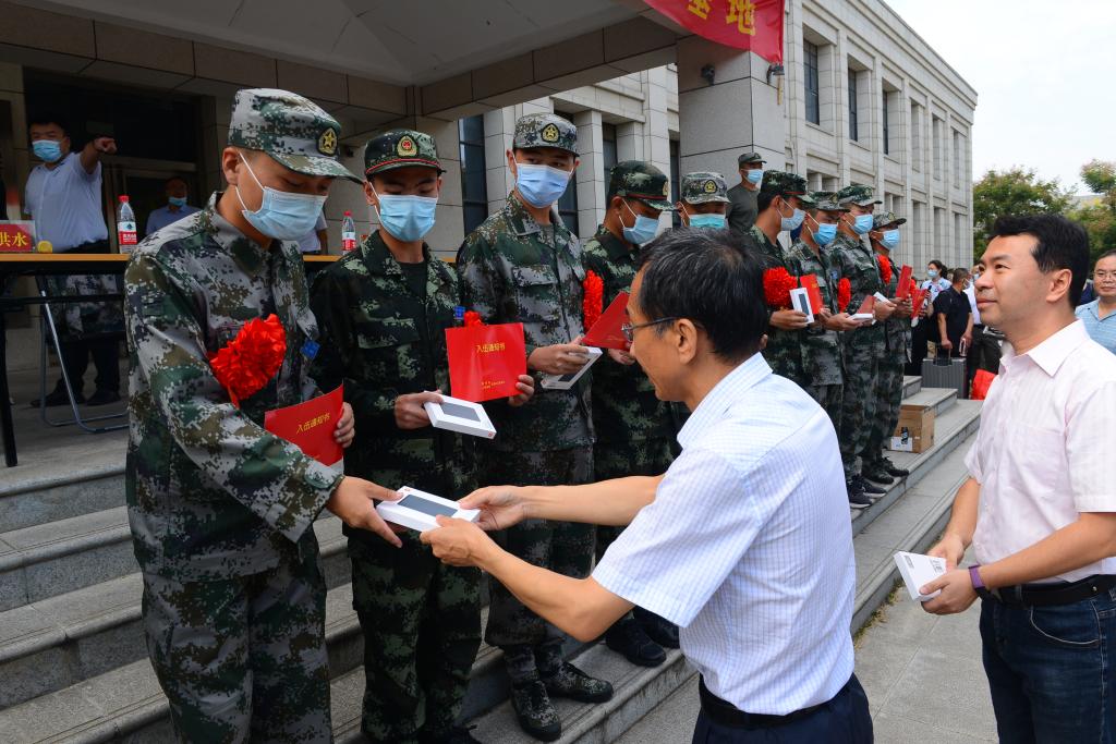 最后,张木副书记给九名入伍学生发放了纪念品并合影留念。