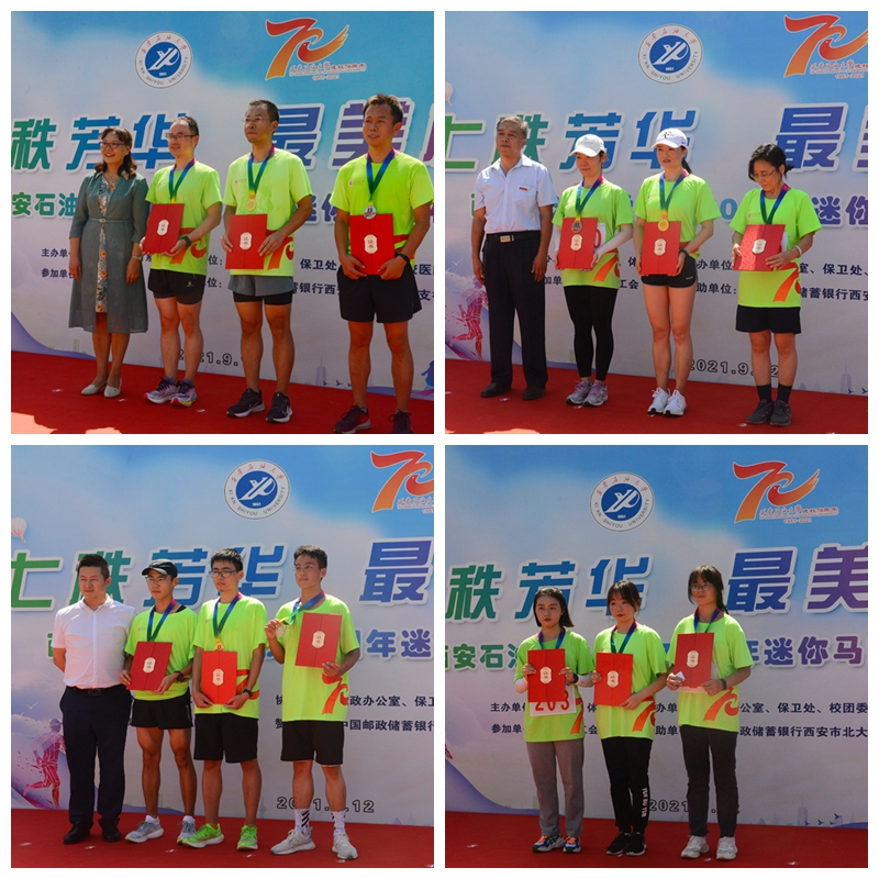 仪式结束后,与会领导和嘉宾移步图书馆东广场,为“七秩芳华,最美校马”迎校庆环校迷你马拉松活动鸣枪开赛。来自全校各单位的师生运动爱好者激情开跑,用运动点燃热情,奔跑献礼校庆。此次迷你马拉松比赛为环校赛道,全程5公里,比赛分设教职工男女组和学生男女组。经过激烈的比拼,地球科学与工程学院白玉彬、计算机学院乔晓获得教工男子组、女子组第一名,电子工程学院柯尊杰、人文学院强波蓉分获学生男子组、女子组第一名。