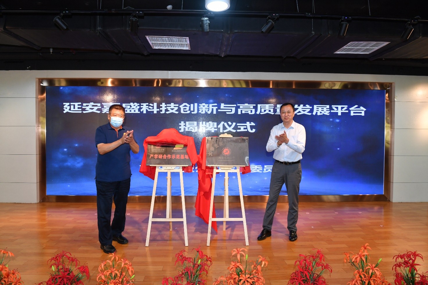 会上,副校长张荣军与延安嘉盛公司董事长苏忠贵代表双方签署校企合作协议,并为“产学研合作示范基地”和“大学生实习实训基地”揭牌。