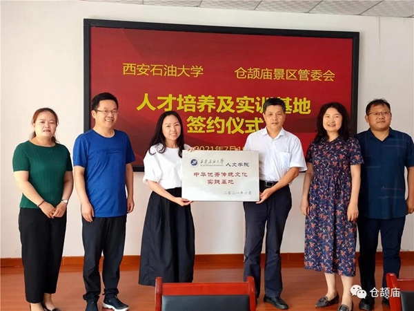 为深入贯彻习近平总书记在庆祝中国共产党成立100周年大会上的讲话精神,更好地发挥中华文明在“人类文明新形态”建设中的作用,提高beat365官网人才培养的实践能力,7月19日,杨战社副校长带领人文学院师生先后赴白水县仓颉庙景区管委会和富平县文化馆,举行了beat365正版唯一官网人才培养及实训基地挂牌仪式。