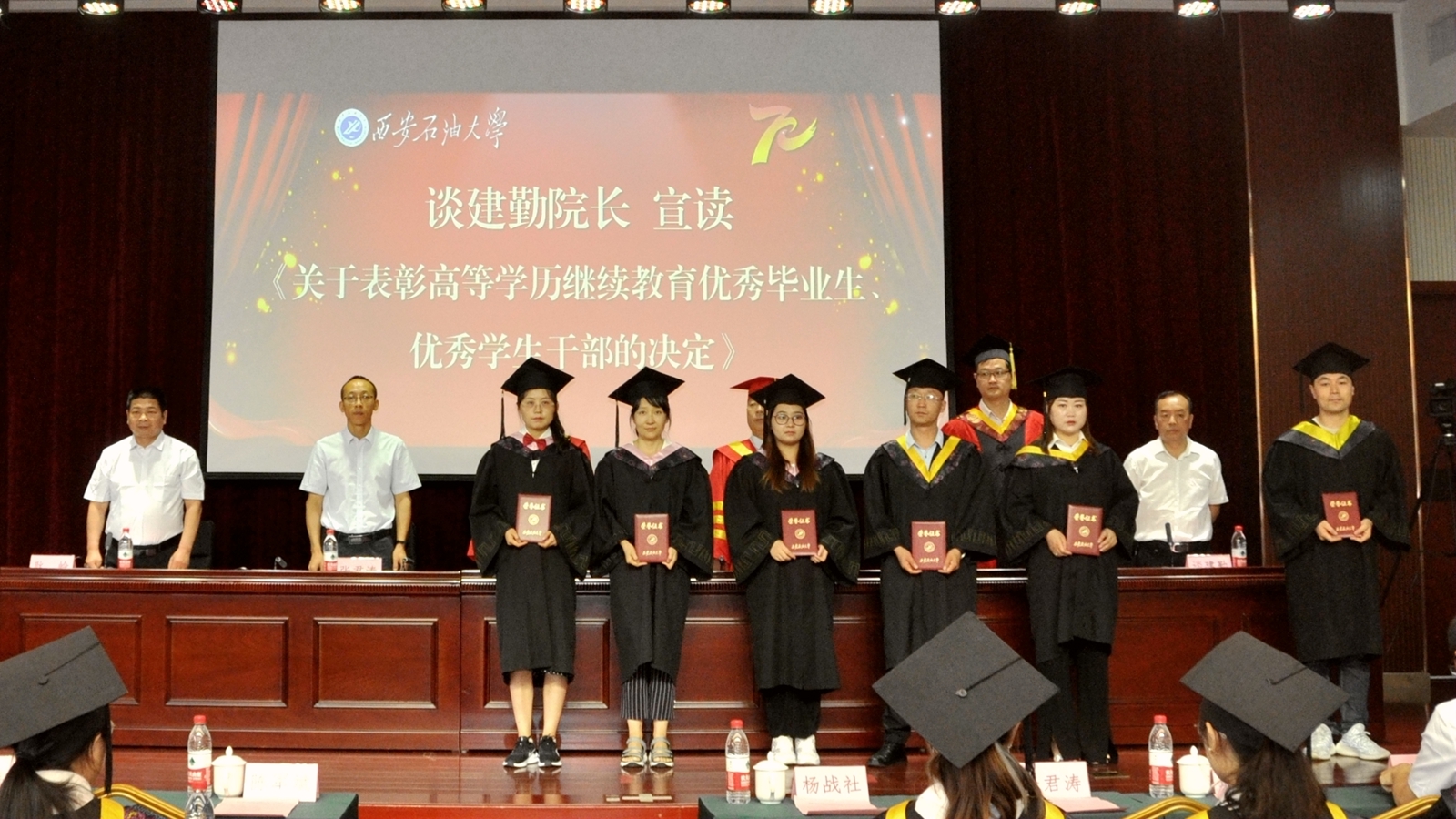 7月10日上午,beat365官网高等学历继续教育2021年学士学位授予仪式在明德校区明德楼报告厅隆重举行。副校长杨战社,副校长、校学位评定委员会副主席陈军斌,校学位评定委员会委员、教务处处长张君涛,石油工程学院副院长赵金省教授出席学位授予仪式。继续教育学院党总支书记耿岭主持授位仪式。2021年获得学位及因疫情原因未举办授位仪式的2020年获得学位的共36名学生代表参加授位仪式。