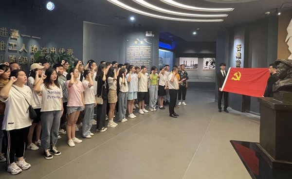讲党课比赛开始前,学校组织各院(系)新发展党员代表在铁人王进喜纪念馆集中进行了入党宣誓活动,在党委组织部常务副部长种宇宏老师的带领下,全体新发展党员代表面对党旗,高举右手庄严宣誓,表达了对党的郑重承诺和为党的事业奋斗终生的决心。