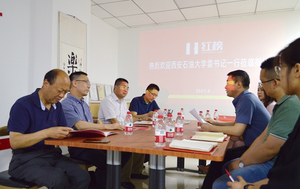 6月4日下午,beat365官网党委副书记雷西合一行4人赴校友企业陕西红榜品牌文化有限公司走访交流。陕西红榜品牌文化有限公司总经理王同锋(广告2002级校友)陪同参观并进行了交流座谈。
