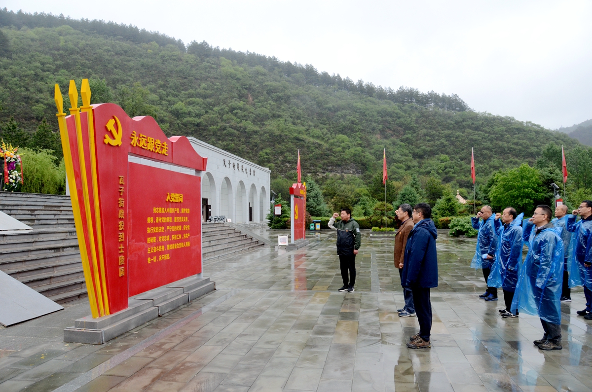 16日上午,在黄龙县瓦子街战役旧址的学习涵盖现场教学、仪式教学、体验教学。大家不畏风雨,为牺牲的革命烈士敬献花篮、瞻仰烈士纪念碑,重温了入党誓词。随后,大家步入瓦子街战役纪念馆,参观馆内历史陈列,集中观看了瓦子街战役专题片《永远的丰碑》。一幅幅图片、一幕幕生动感人的影像全面展示了浴血奋战的感人场景。在体验教学阶段,大家在陵园现场聆听了屈军锋老师所做的《汲取力量,用奋斗实现先烈的美好梦想》的追思报告,感受了烈士们英勇不屈的革命精神。最后,大家排成三列纵队,跑步进入东南山战役主战场遗址,并跟随讲解员重温了瓦子街战役的可歌可泣的战斗过程。