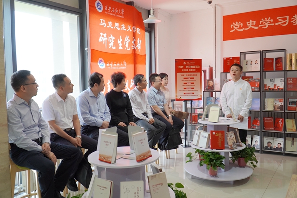 检查指导过程中,陕西高校首批新时代党建示范创建和质量创优工作标杆院系、地球科学与工程学院应用地球物理系教工党支部书记赵军龙,经济管理学院马克思主义研习社分社学生社团党支部书记李卓锦就基层师生党支部党史学习教育开展与指导组作了现场汇报交流。