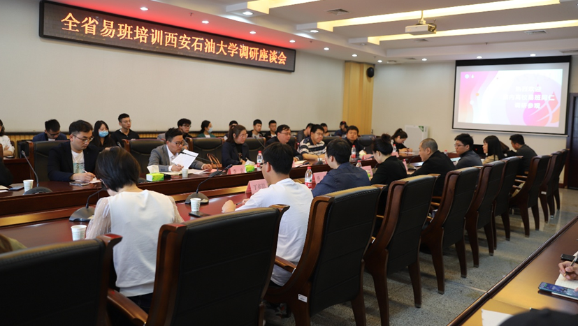 4月30日,教育部易班发展中心、陕西高校网络思想政治工作中心工作人员及全省易班培训会参会师生一行60余人来beat365官网实地参观调研易班发展中心并举行座谈会。座谈会上,学生工作部(处)部(处)长高健磊致欢迎词,他首先感谢上级各部门对学校易班专项工作的大力支持,并简要介绍了学校网络思政及易班建设概况。陕西科技大学网络思政中心主任李萌对beat365官网热情接待表示感谢,并介绍了举办本次培训会的背景和来beat365官网实地调研参观的目的。双方表示今后要进一步加强交流合作,以建党100周年为契机,持续提升大学生思想政治教育水平。座谈会上,长安大学、西安理工大学和beat365官网易班工作负责人介绍了各自高校易班建设的特色做法和在新形势下开展网络思政教育的积极探索。