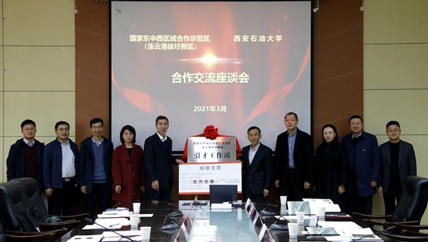 3月23日下午,国家东中西区域合作示范区(连云港徐圩新区)徐圩新区管委会副主任封其山,投资促进局局长徐小苏,人社局副局长、人社中心主任管成龙,西安办主任刘涛等一行6人到学校调研,在雁塔校区第一会议室举办了交流座谈会暨菁英人才奖学金付款仪式及引才工作站揭牌仪式。校党委副书记张木出席会议,学生工作部(处)部(处)长高健磊主持会议。学校各相关部门、相关院(系)负责人参加座谈会。
