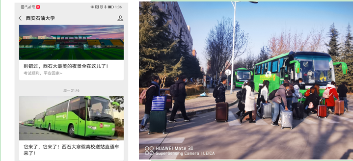 学思践悟守初心,牢记使命见行动。在巩固深化“不忘初心、牢记使命”主题教育成果之际,后勤管理处积极按照主题教育“守初心、担使命,找差距、抓落实”总要求,聚焦师生出行交通难点,以实际行动推进主题教育成果落地生根。这一系列举措受到了校友和同学们的广泛好评和称赞,纷纷通过各种渠道留言道:“虽然毕业了,但还是想说,西石大的假期实在太暖心了,给100个赞!”“温暖回家路,太棒了”“疫情期间,这个服务很贴心!”