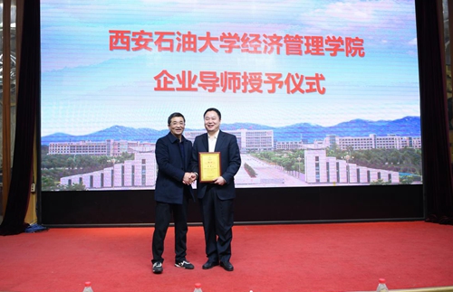 经济管理学院副院长李俊亭为莫勇总会计师颁发了企业导师证书,并代表经济管理学院与陕建控股集团公司签订了研究生联合培养基地合作协议。