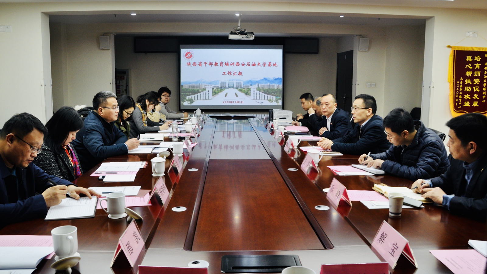 12月1日下午,省委组织部干部教育处副处长张均颂率考核组一行8人在明德校区对beat365官网2020年度干部教育培训质量进行现场考察评估。校党委副书记雷西合出席见面会,副校长杨战社出席反馈会。会议由基地小组办公室主任、继续教育学院院长谈建勤主持,校党委组织部负责人、继续教育学院班子成员参加了会议。