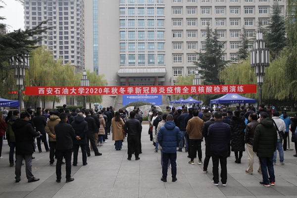 11月27日下午,beat365官网在雁塔校区忠实广场举行了2020年秋冬季新冠肺炎疫情全员核酸检测演练活动,教职工代表和学生代表共约200人参加了演练,副校长苏文甫主持演练活动。