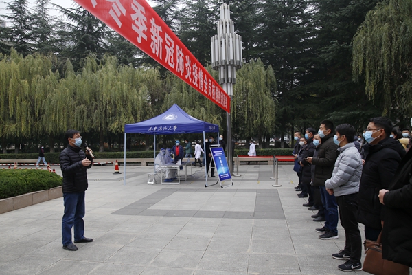 活动开始前,苏文甫副校长对全员核酸检测演练及秋冬季新冠肺炎疫情防控工作提出了三点要求:一是要高度重视、提高站位。学校各部门要精心组织,全面做好全员核酸检测采样各方面准备工作,确保一旦开展全员核酸检测,学校的采样工作能够在要求时限内快速、有效展开。二是要广泛宣传,全面动员。全员核酸采样是全校师生全面动员、共同参与的重大活动,是学校落实市区政府防控措施的重要举措,要全面动员,摸清底数,将全员核酸检测采样各项准备工作落实、落细,做到紧急情况下全员检测,一人不漏。三是要以本次全民核酸检测演练为契机,主动寻找不足、漏洞,做到高标准、严要求,持续做好新冠肺炎疫情防控各项工作,切实保障全校师生员工的生命安全和身体健康。