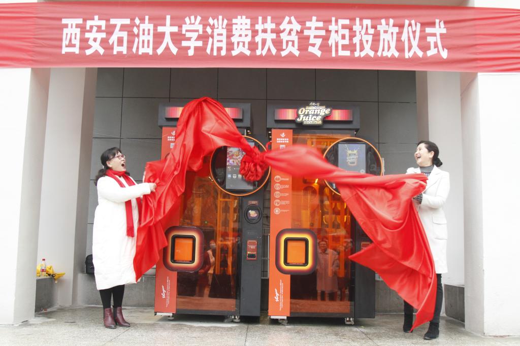 仪式上,校工会主席袁玎致辞。她谈到,2020年是全面建成小康社会目标实现之年,也是脱贫攻坚决战决胜、全面收官之年。此次贯彻落实陕西省委教育工委扶贫专柜进高校的工作要求,beat365官网党委高度重视,校党委副书记雷西合亲自安排部署前期工作,国资处、后勤处等部门给予了大力支持,beat365官网与上海巨昂科技有限公司达成合作协议,确保雁塔校区扶贫专柜顺利投放落地。