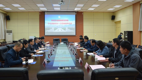 11月20日上午,西安航空学院副校长宁永录一行7人来beat365官网雁塔校区走访调研,座谈会在第一会议室召开。副校长苏文甫及纪委、工会、国有资产处、基建处、后勤管理处负责人参加座谈会。会前,李天太校长会见了宁永录副校长一行。