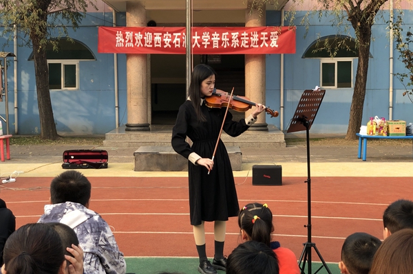11月11日,音乐系何云副教授、白雨可老师带领部分党员学生,赴陕西省天爱智障儿童康复中心举办社会公益演出。本场演出由何云老师精心编排,师生联手演绎,为特殊的孩子们呈现了一场多姿多彩的现场演出。