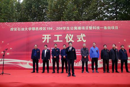 仪式上,杨战社副校长宣布鄠邑校区19#、20#学生公寓楼和科技一条街项目开工。
